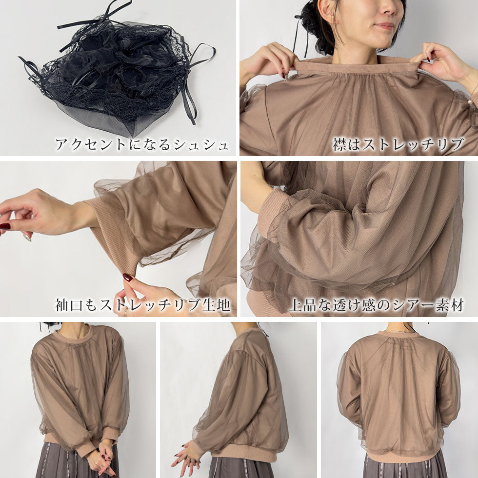 [45%OFF]シュシュ付きシアーチュールスウェット
