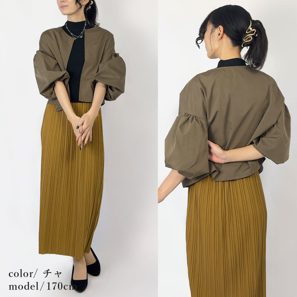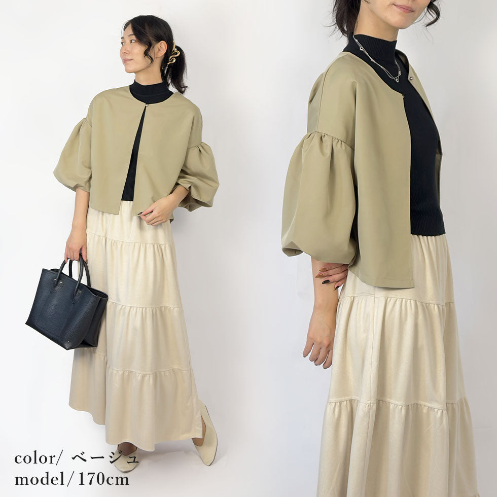 バルーンスリーブノーカラージャケット