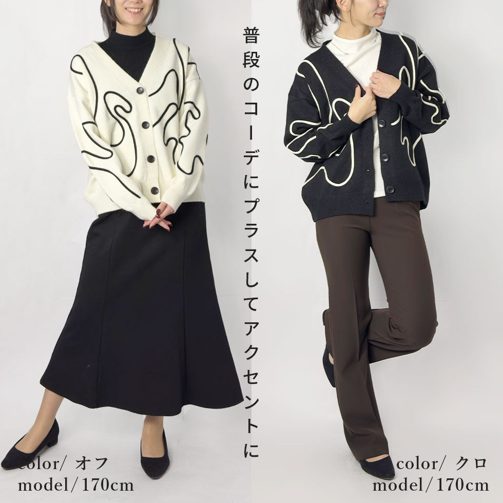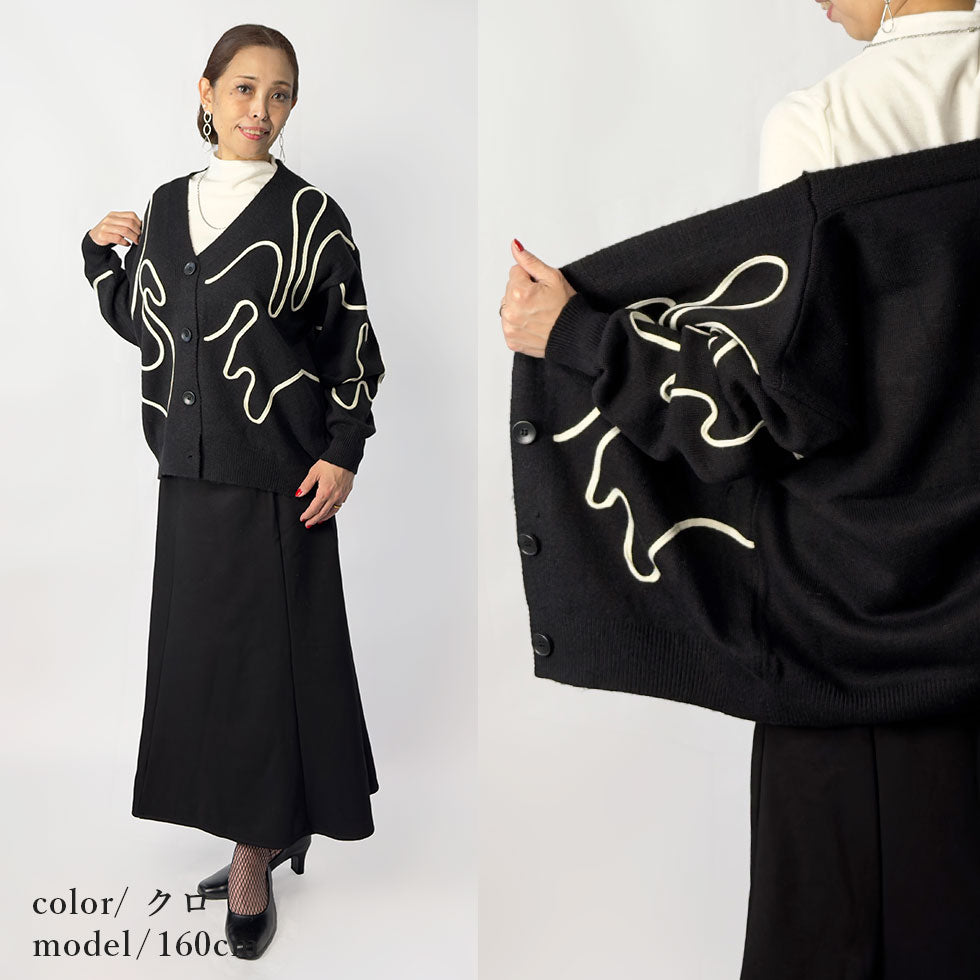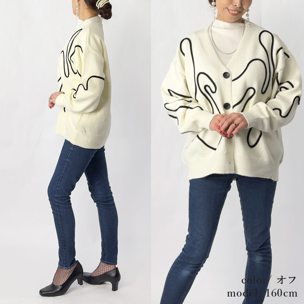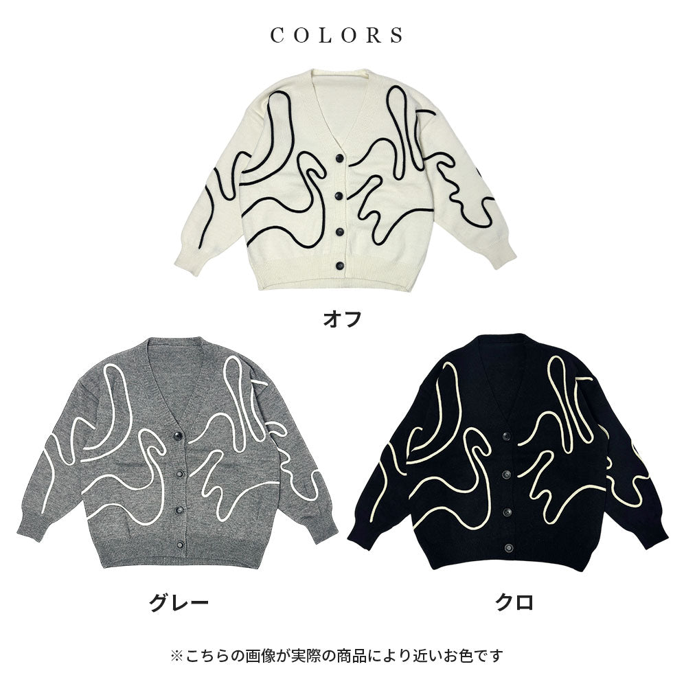唯一無二の存在感で魅せる、曲線ラインアートニットカーディガン。