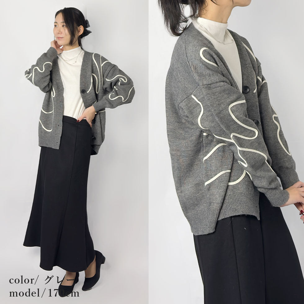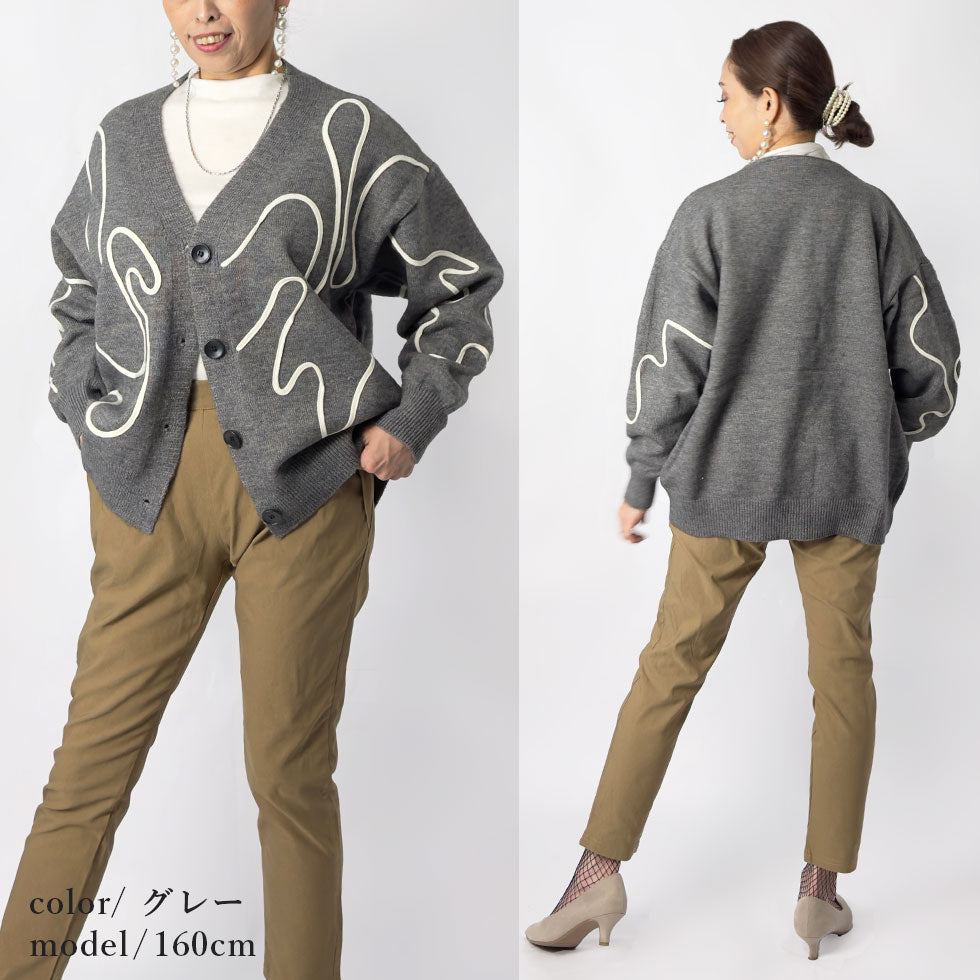 [35%OFF]ラインアートオーバーサイズニットカーディガン
