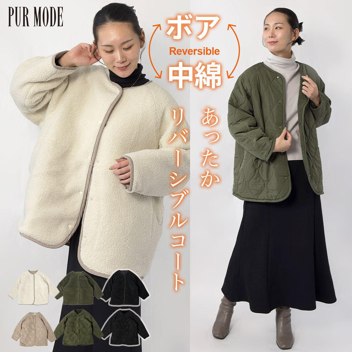 気分で表情を変えられる、ラグランボアキルティングリバーシブルコート。